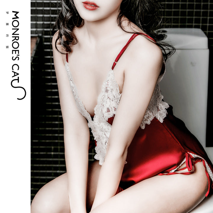 Sexy lingerie MC018088 slit suspender nightdress